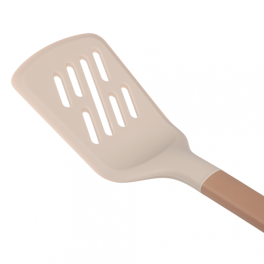 Лопатка кулинарная SATOSHI Кантри — ваш надёжный помощник на кухне. Изготовленная из качественного термостойкого силикона, она бережно обращается с вашей посудой, сохраняя антипригарные покрытия и даря уверенность при готовке. Специальные прорези на поверхности лопатки позволяют маслу стекать, делая ваши блюда менее калорийными и более аппетитными. А удобная ручка идеально лежит в руке, превращая процесс переворачивания, жарки или сервировки в удовольствие. Лопатка выполнена в нежном бежевом оттенке, который легко впишется в интерьер вашей кухни и дополнит коллекцию Кантри.