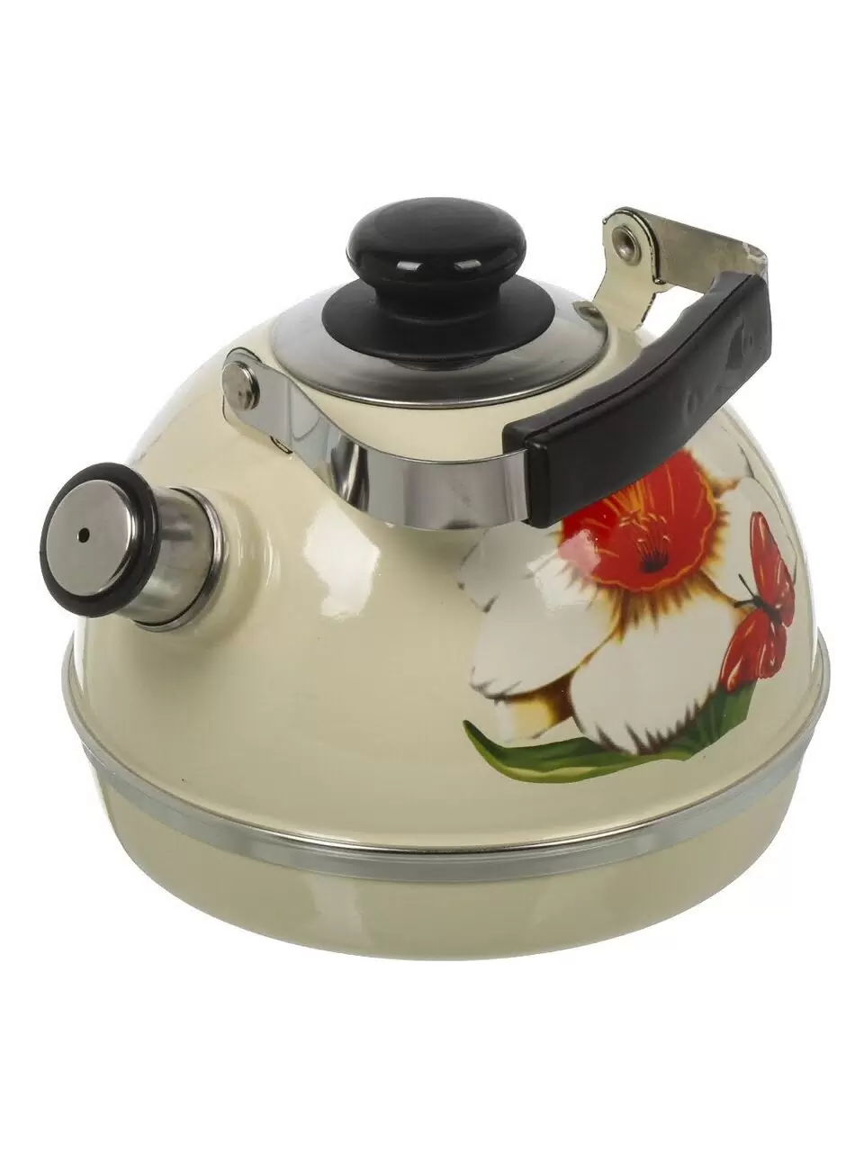 Чайник эмалированный стальной Рубин Нарцисс 3.5 л — идеальное решение для дома и дачи: большая вместимость, свисток, подвижная ручка, стиль «слоновая кость».