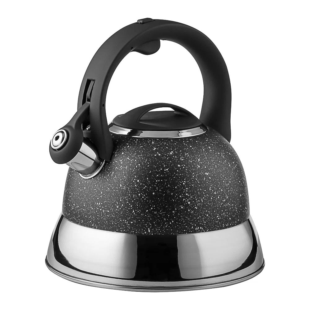 Стальной чайник SATOSHI «Гардан», объем 2,7 л из нержавеющей стали имеет современный дизайн и качественное исполнение с толстым капсульным дном, которое равномерное распределяет тепло по всему объему и долго держит температуру после закипания. Толстые стенки не деформируются, бакелитовая ручка не нагревается и не скользит в руках. Свисток надежно фиксируется в открытом положении. Чайник черного цвета будет гармонично смотреться в интерьере кухни любого стиля и станет неотъемлемым атрибутом повседневного чаепития. Подходит для всех типов плит, включая индукционные.