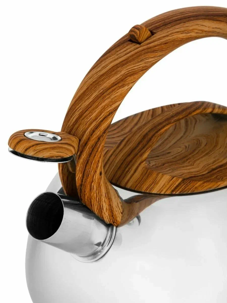 Неподвижная коричневая бакелитовая ручка не только добавляет элегантности, но и обеспечивает безопасный и удобный захват во время использования. Съемная крышка облегчает процесс наполнения и чистки, а совместимость с индукционными плитами делает чайник универсальным для любой кухни.