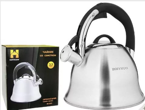 Чайник Hoffmann НМ-55103 3,3 л со свистком. Чайник изготовлен из прочной нержавеющей стали и оснащен бакелитовой ручкой, которая не нагревается во время использования. Прочные стенки толщиной 0,6 мм обеспечат долговечность, а стильное матовое покрытие позволит чайнику вписаться в любой кухонный интерьер.Hoffmann - непревзойденное немецкое качество. Компания Hoffmann – знаменитый производитель высококачественной кухонной посуды и различных кухонных аксессуаров. Компания уделяет очень большое внимание даже маленьким деталям при производстве своей продукции, считая, что посуда Hoffmann кроме функциональности и качества должна приносить радость своей красотой и изяществом, стать украшением для любой кухни. В процессе производства все материалы, используемые для изготовления посуды подвергаются строжайшему контролю качества, и это не удивительно, ведь именно качественные материалы могут дать то высокое качество, надежность и долговечность, которое присуще продукции Hoffmann.