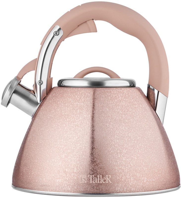 Чайник TalleR 11354 3 л со свистком. Высококачественная нержавеющая сталь марки 18/10 (AISI 304). Внешнее покрытие выдерживает температуру до 180 °C, внешняя полировка свистка и части ручки - зеркальная, внутренняя - матовая. Крышка выполнена из нержавеющей стали и пластика покрытием soft-touch. Ручка выполнена из нержавеющей стали и пластика с приятным soft-touch покрытием. Свисток с рычажным механизмом убережет руки от ожогов. Есть отметка максимального уровня на внешней поверхности (нижний уровень носика). Она соответствует полезному объему 3 литра. Для сохранения наилучшего внешнего вида чайника рекомендуется ручная мойка. Подходит для всех типов плит, включая индукционные. Обращаем внимание, при использовании на газовых плитах необходимо следить, чтобы пламя не выходило за пределы диаметра дна чайника. - перед первым использованием требуется тщательно промыть изделия; - хранить изделия в чистом, сухом виде; - не рекомендуется использовать губки с абразивным слоем; - не рекомендуется промывка изделий в посудомоечной машине с использованием моющих средств, в состав которых входит активный кислород.