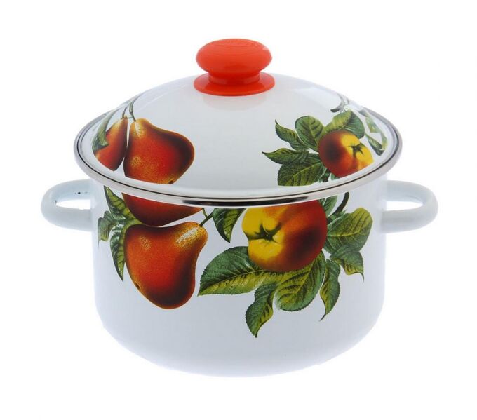 Кастрюля объёмом 4 л с артикулом 3MD201M/дл «Дары лета» белого цвета с ободком — это эмалированная посуда от бренда «Сибирские товары». Она подходит для приготовления различных блюд и совместима с разными типами плит.