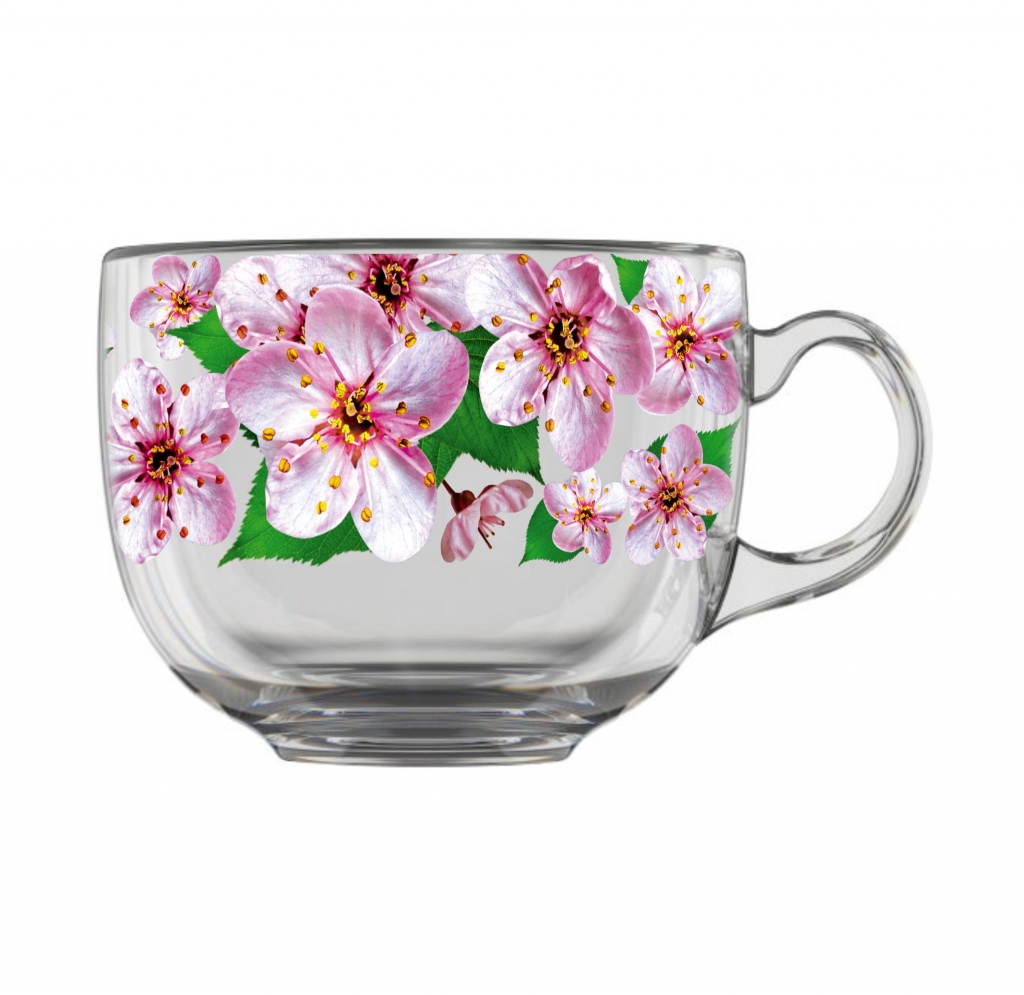 изготовлена из высококачественного стекла с круговым деколью «Сакура»;