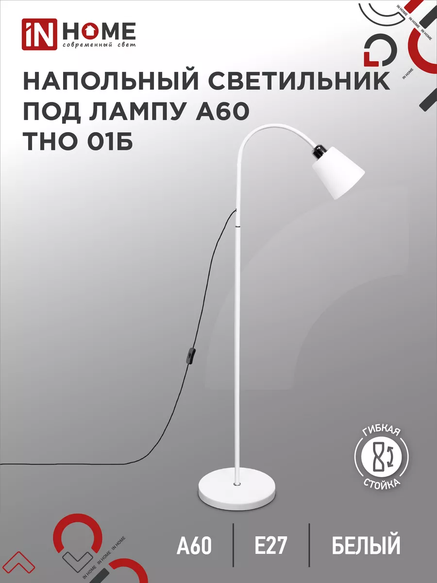 Торшер ТНО 01Б 60Вт Е27 бел.IN HOME