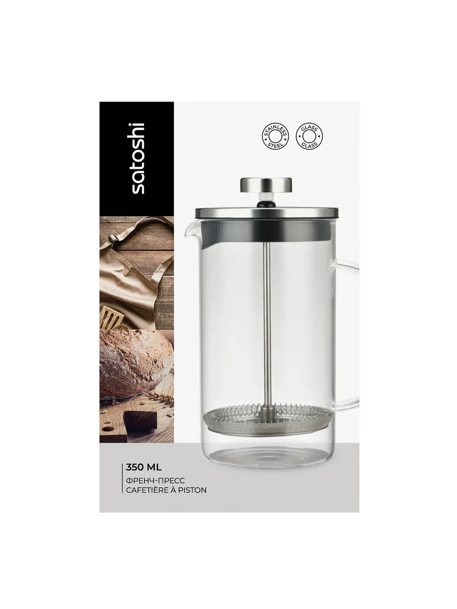 Френч-пресс SATOSHI "Тэмму" 350 мл — компактное и технологичное решение для приготовления идеального кофе. Колба из жаропрочного стекла объёмом 350 мл сохраняет тепло и аромат напитка, обеспечивая насыщенный вкус. Фильтр-поршень из нержавеющей стали с двойной сеткой гарантирует чистое прессование без частиц кофейной гущи. Крышка со встроенным сливным фильтром позволяет наливать напиток без снятия поршня. Устройство полностью разбирается и подходит для мытья в посудомоечной машине. Сочетание функциональности и стильного дизайна отвечает потребностям самых взыскательных пользователей.