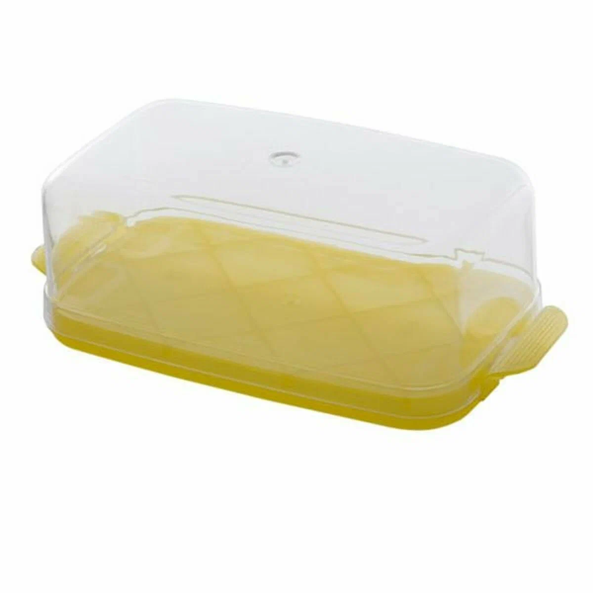 Масленка представляет собой пластиковое блюдце с высокой прозрачной крышкой, накрывающей кусок масла.