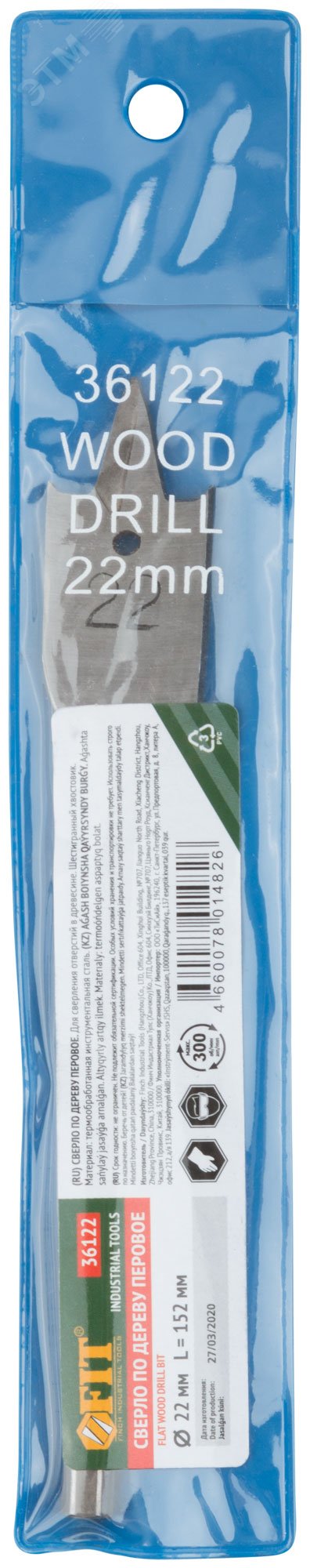 Перовое, L-152 мм, шестигранный хвостовик. Материал - инструментальная сталь. Упаковка - п/э пакет.