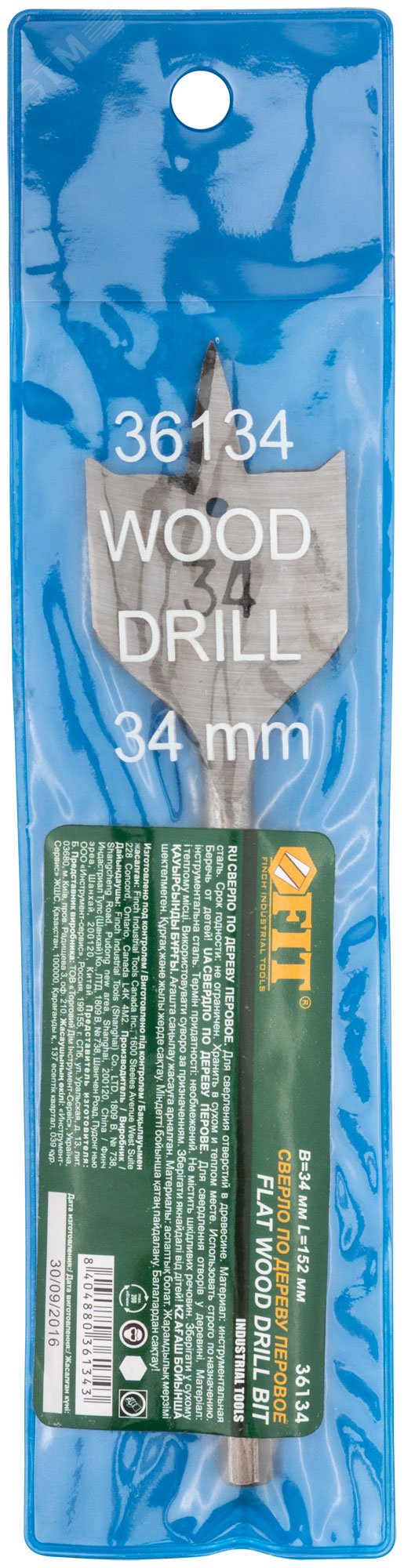 Перовое, L-152 мм, шестигранный хвостовик. Материал - инструментальная сталь. Упаковка - п/э пакет.