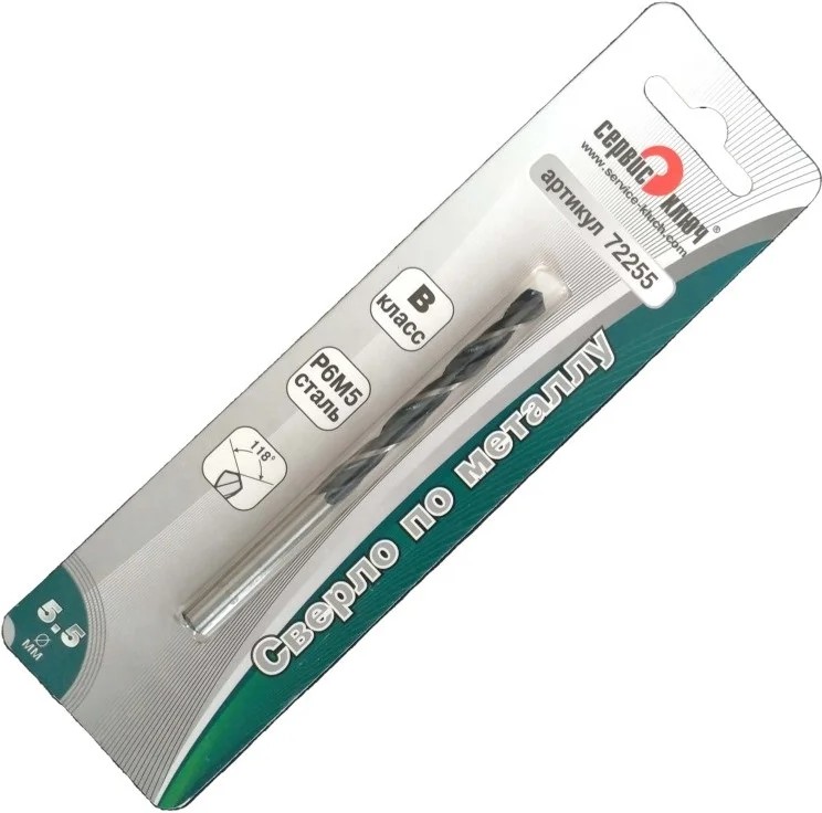Сверло по металлу «Сибртех» 72255 из быстрорежущей стали с цилиндрическим хвостовиком.