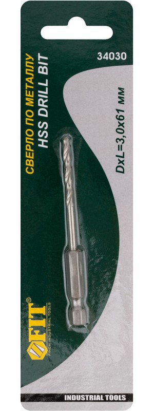 Сверло FIT IT 34030 изготовлено из усиленной полированной быстрорежущей стали (HSS). Данная оснастка имеет U-образный хвостовик под биту. Такое сверло надежно крепится к инструменту и служит долго.
