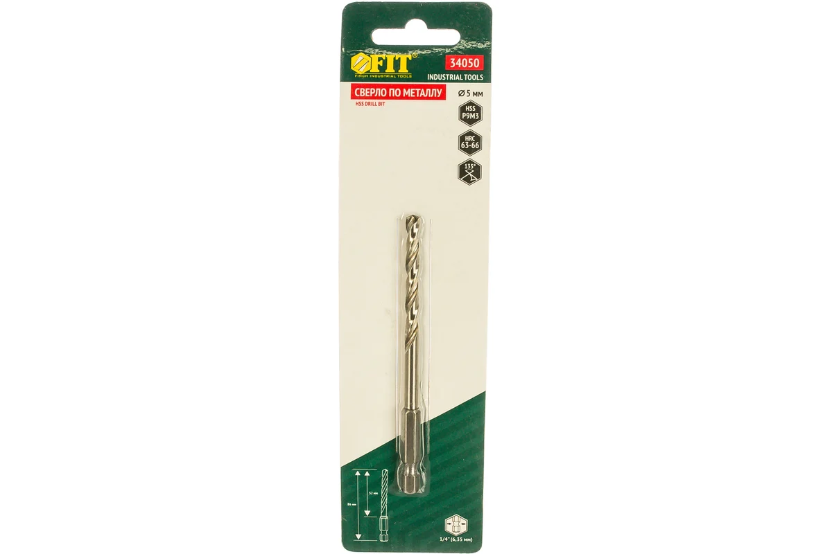 Сверло FIT IT 34050 изготовлено из усиленной полированной быстрорежущей стали (HSS). Данная оснастка имеет U-образный хвостовик под биту. Такое сверло надежно крепится к инструменту и служит долго.