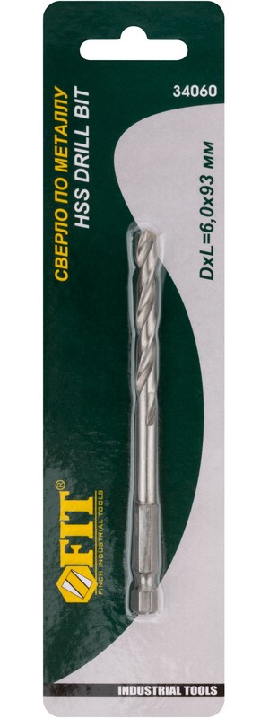Сверло FIT IT 34060 изготовлено из усиленной полированной быстрорежущей стали (HSS). Данная оснастка имеет U-образный хвостовик под биту. Такое сверло надежно крепится к инструменту и служит долго.