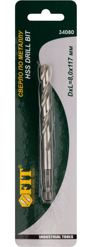 Сверло по металлу HSS 8,0мм хв. под биту 34080