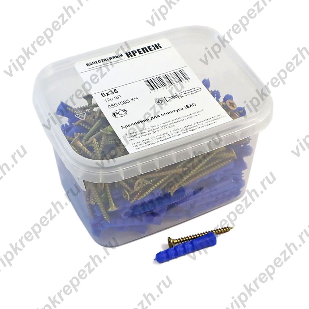 Дюбель еж с шурупом Качественный Крепеж для установки плинтусов 6х35 120 шт 0501095 КЧ поставляется в контейнере из прозрачного пластика. Крепежный набор служит для установки в полнотелый материал и фиксации отделочных материалов. Дюбель выполнен из полипропилена. Шуруп с анодированным покрытием изготовлен из стали Ст 10.