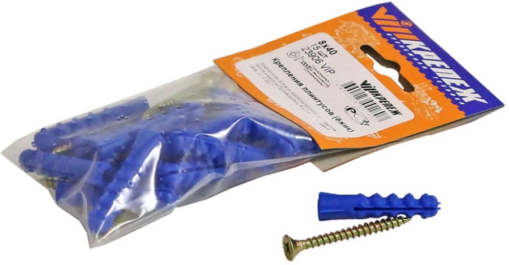 Набор крепления плинтусов VIPкрепеж 8/40 «дюбель ёжик» (артикул 23906 VIP), фасовка 15 шт..