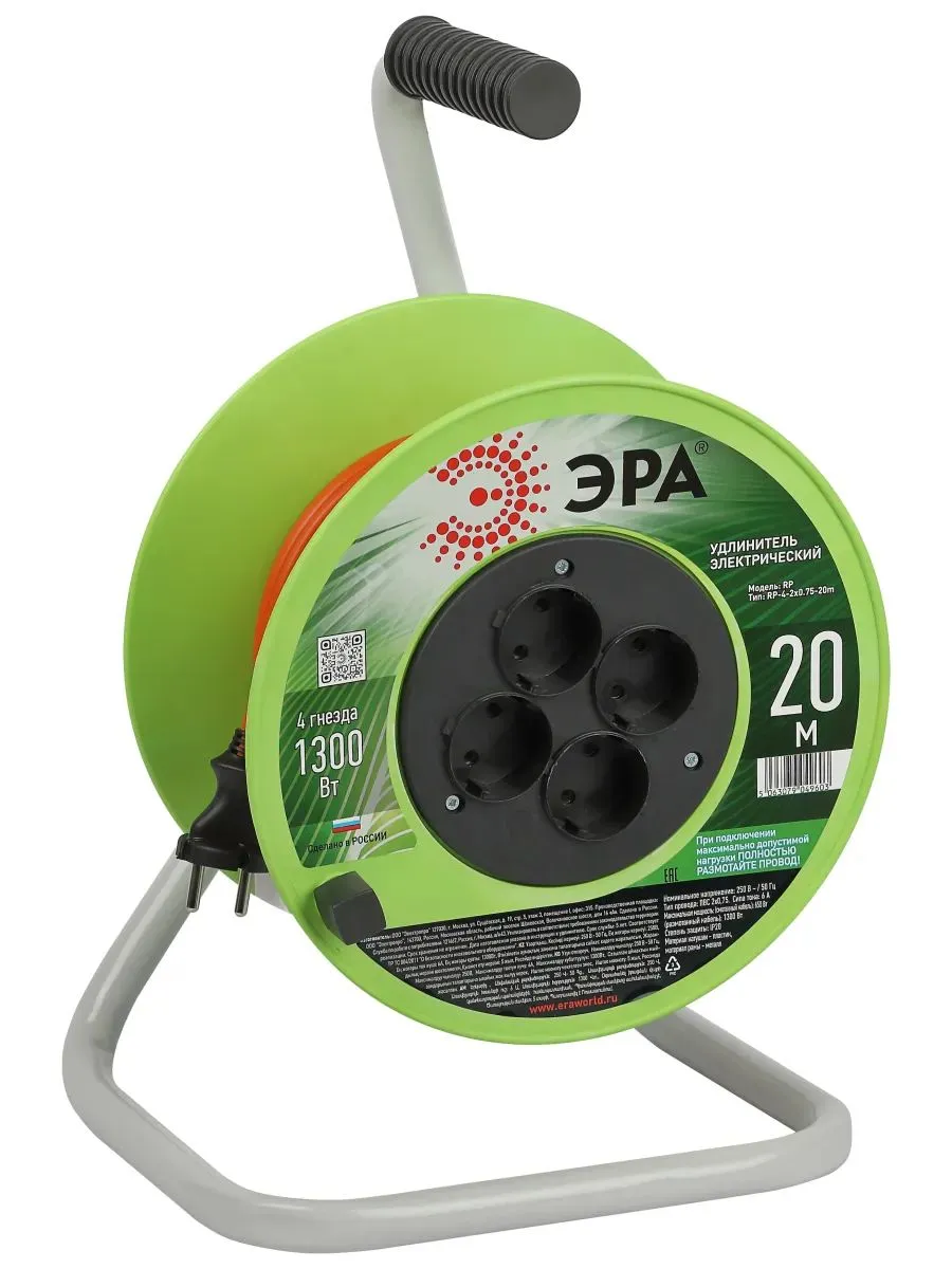 Удлинитель ЭРА 4гн б/з 20м ПВС 2*0,75мм2 1300Вт