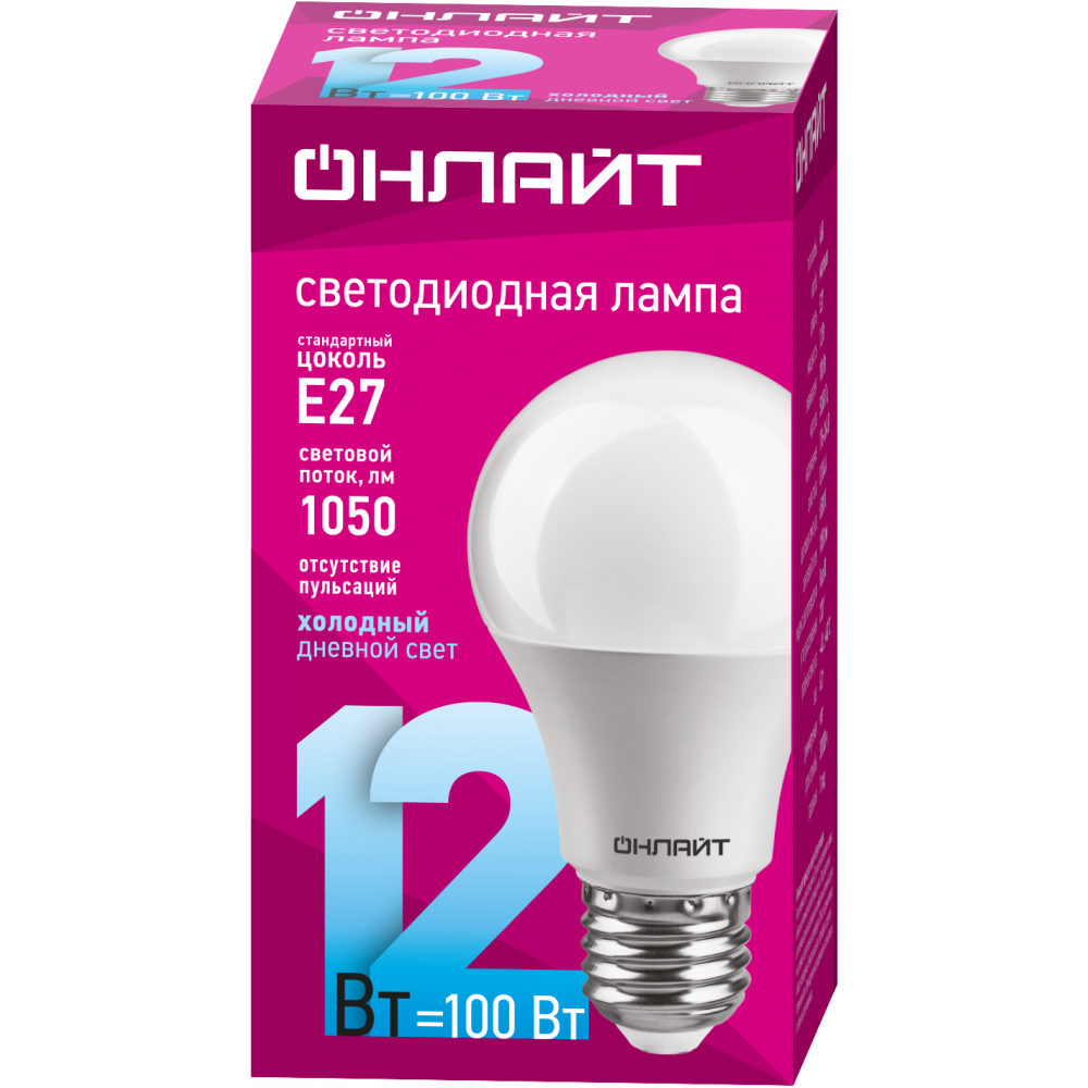 Лампа Онлайт А60-12W-6500K-E27 61141