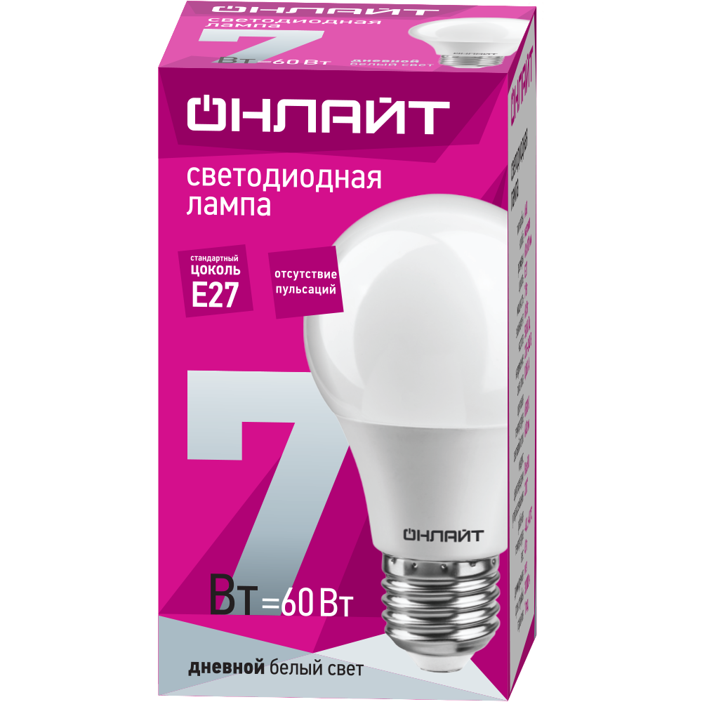 Лампа Онлайт А60-7W 6,5К-Е27 61139
