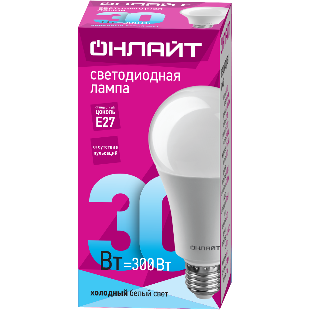 Лампа Онлайт А70-30-230-4К-Е27 61971
