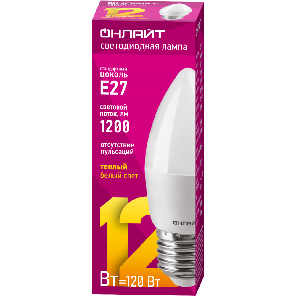 Лампа Онлайт C37-12-2700K-E27 90057
