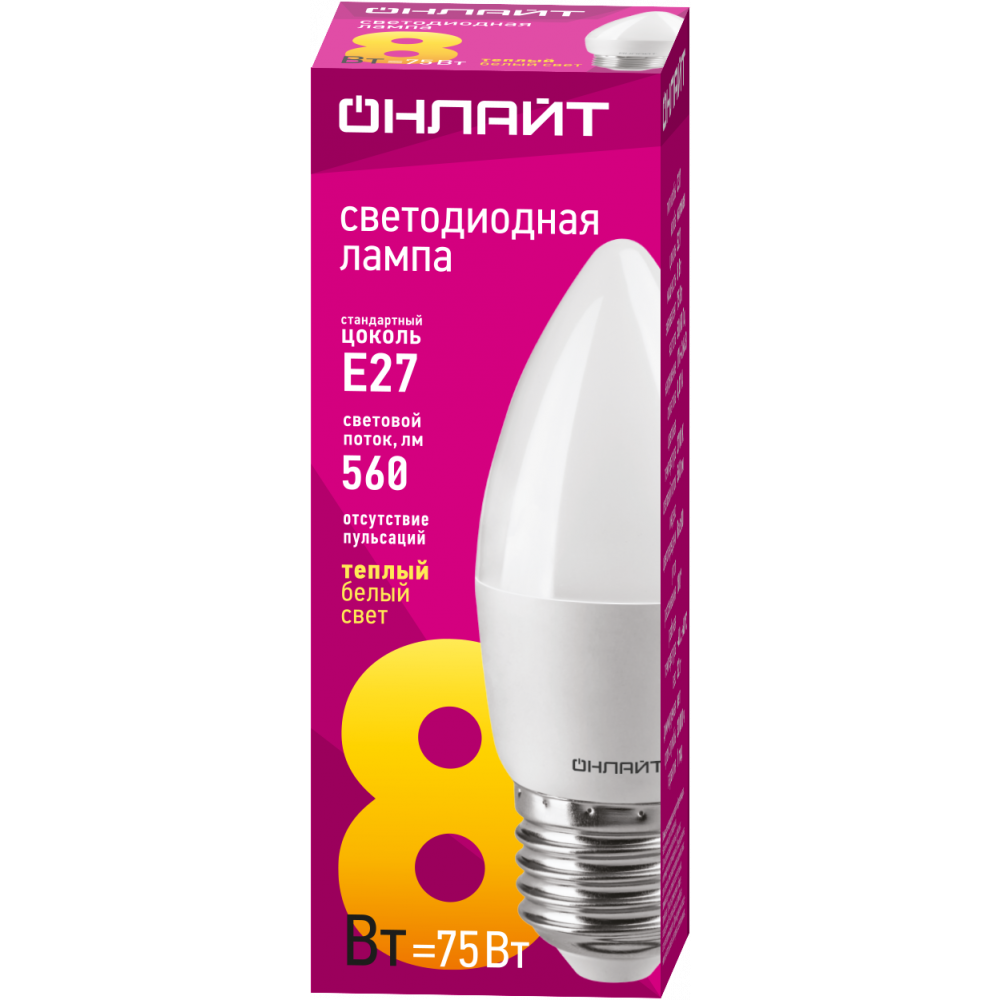 Лампа Онлайт C37-8W-2700K-E27