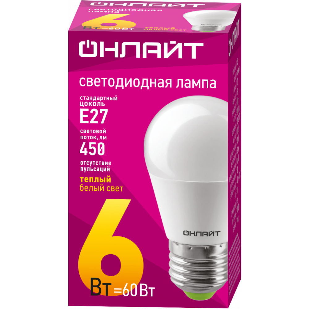 Лампа Онлайт G45 6Вт 2700K E27 71645