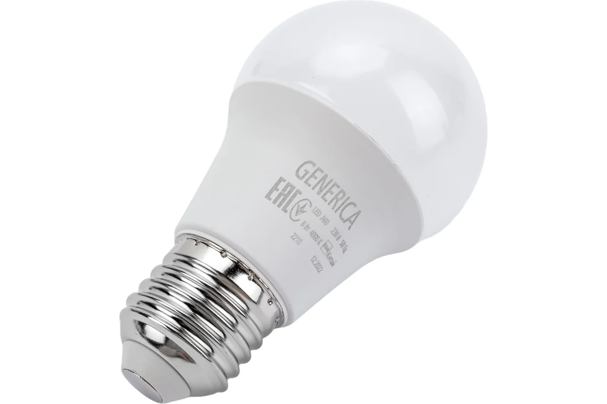 Светодиодная лампа A60 груша 8Вт 230В 4000К E27 GENERICA идеально подходит для использования в качестве основного источника света в домах, офисах и других помещениях. Благодаря своей форме и мощности она создает равномерное и приятное освещение, которое не утомляет глаза. Кроме того, эта лампа обладает высокой эффективностью и долговечностью, что позволяет значительно снизить затраты на электроэнергию и обслуживание.