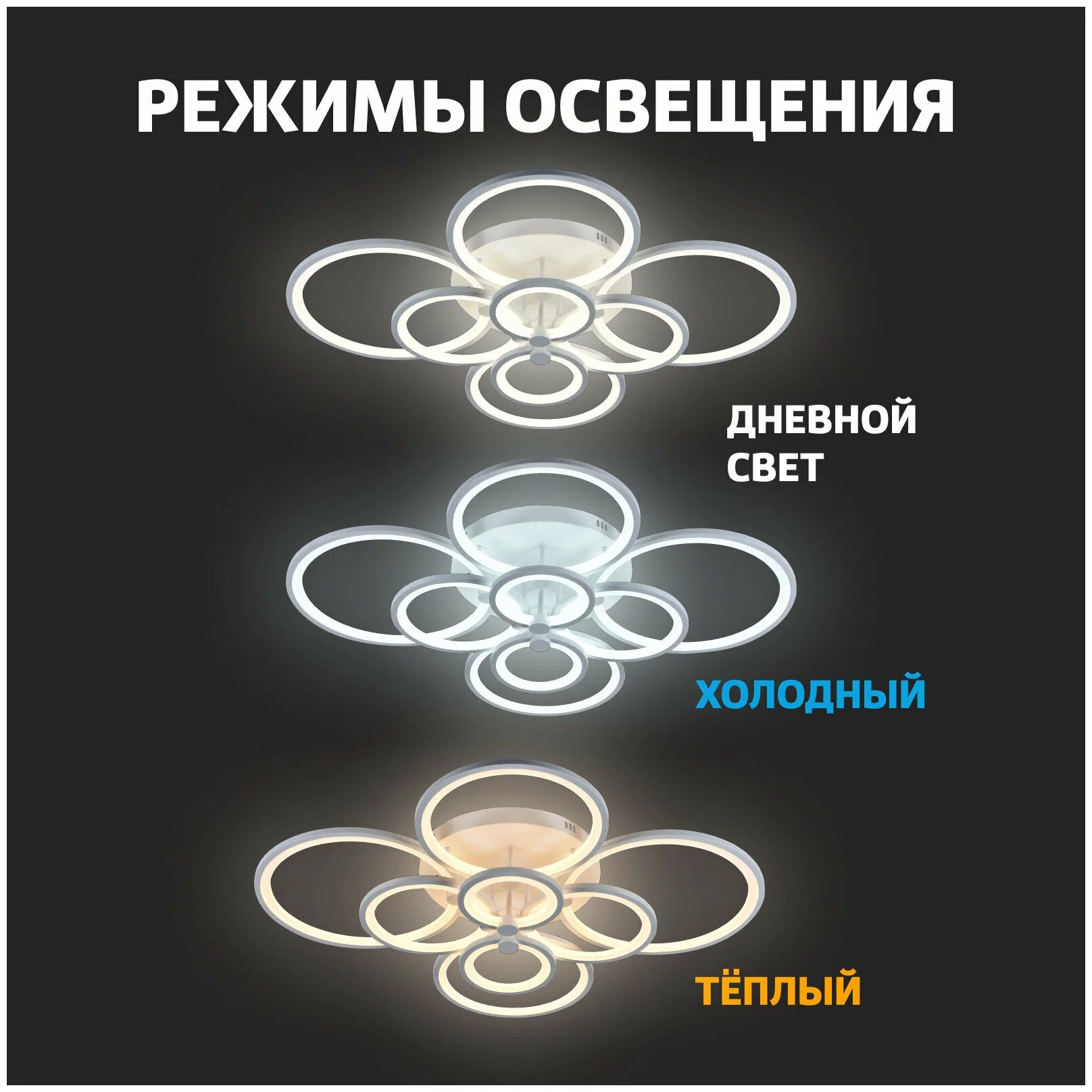 Светодиодная люстра EKS отличается низким энергопотреблением и высокой яркостью свечения. Цветовую температуру можно настроить в пределах 3000-6500K — от теплого до холодного белого света. Индекс цветопередачи Ra > 80 — естественный комфортный глазу свет.