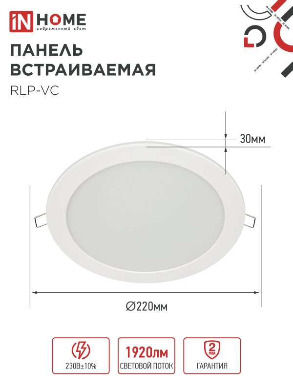 Светильник даунлайт 24Вт 4К RLP-VC IN Home