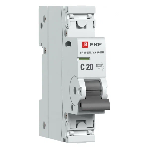 Автоматический выключатель однополюсный 20А серии ВА 47-63 от производителя EKF (ЭКФ) представляет собой надежное устройство для оперативного включения и отключения электрических цепей, а также защиты от перегрузок и коротких замыканий.