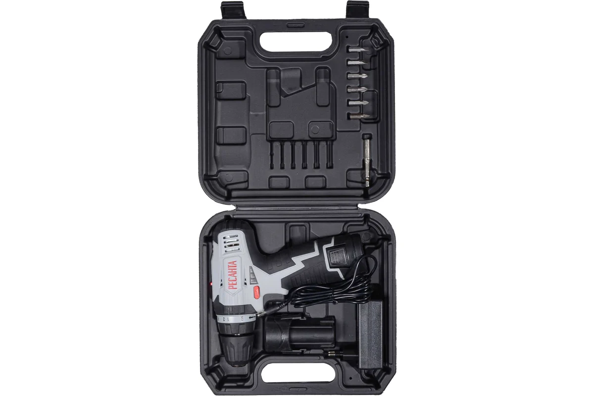 Дрель-шуруповерт Ресанта ДА-12-2ЛК отличается удобством в использовании благодаря прорезиненной рукоятке. Подсветка рабочей зоны обеспечивает точность выполняемых работ при слабом освещении. Самая базовая по мощности модель имеет компактные размеры и малый вес 0,96 кг. Помимо зарядного устройства и набора из 6 бит в комплектацию входит адаптер-удлинитель для бит, позволяющий использовать инструмент в труднодоступных местах. Прочный пластиковый кейс предназначен для безопасного хранения и транспортировки.