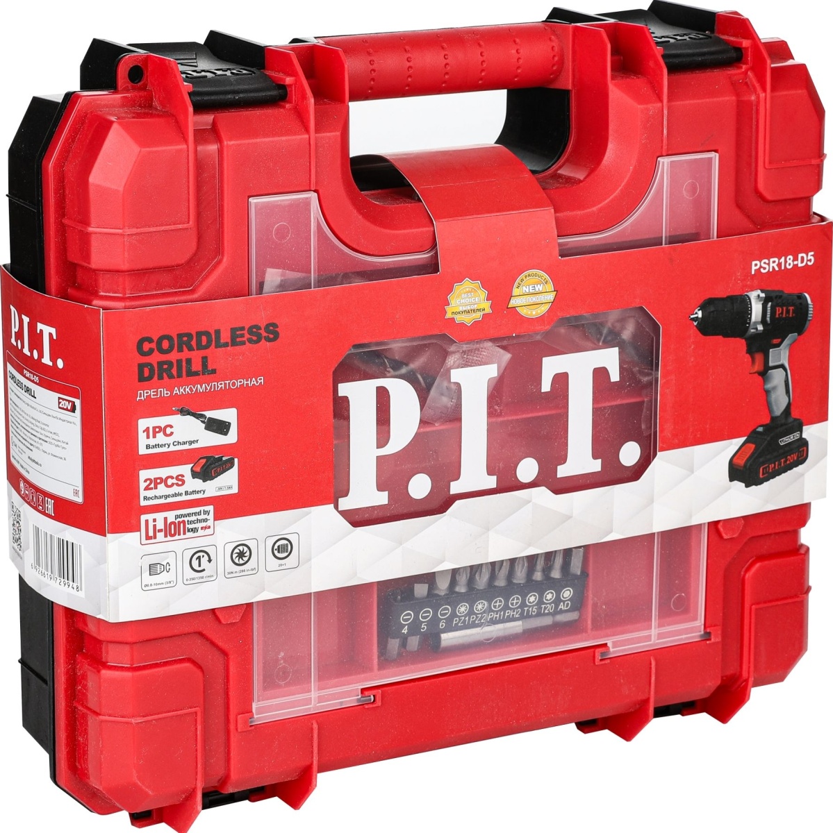 Дрель аккам. PIT PSR18-D5 20B 2АКБ*1.5Aч + набор бит