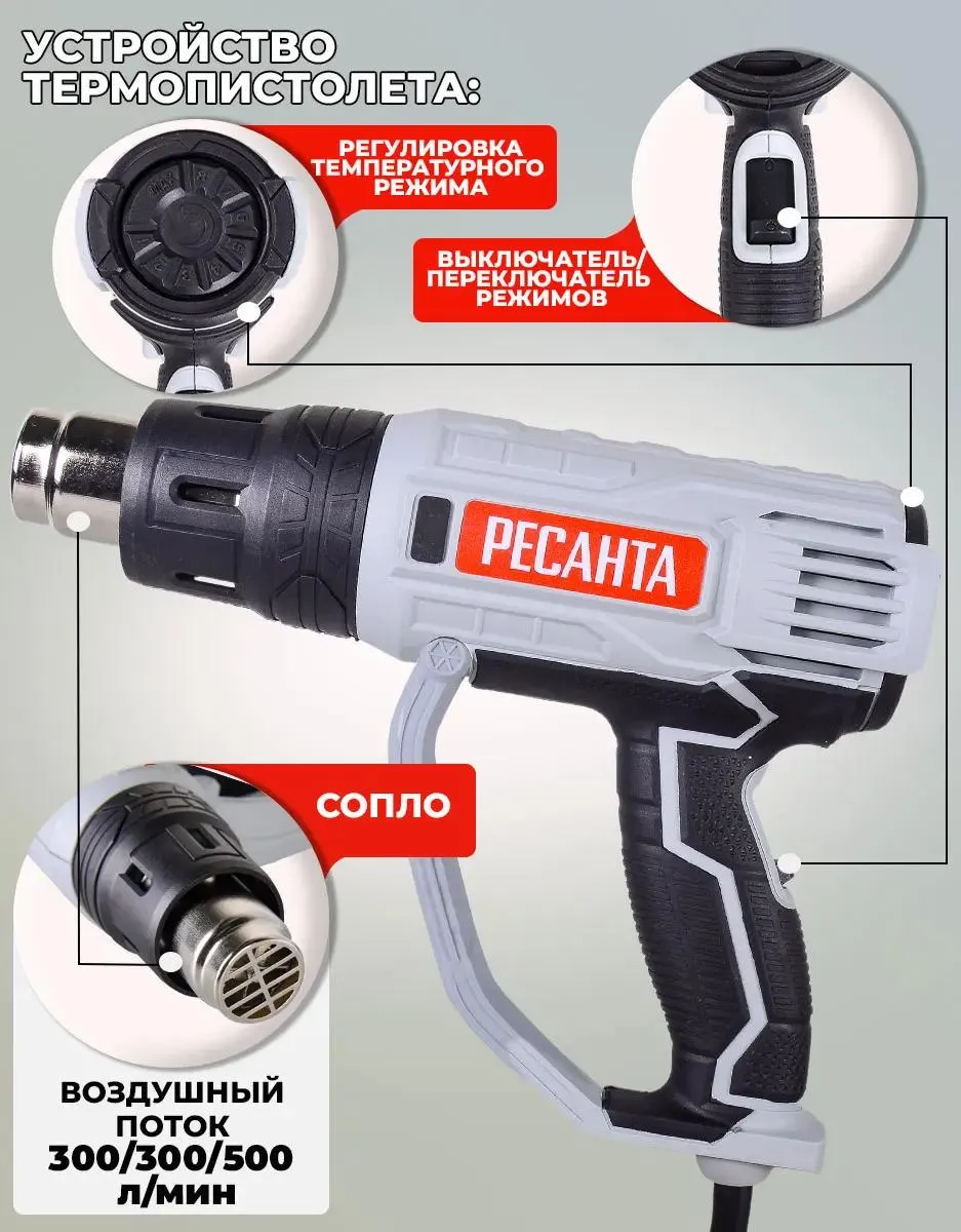 Строительный фен Ресанта ФЭ-2000ЭК – ручной электроинструмент, предназначенный для обработки горячим воздухом поверхностей и материалов, для удаления красок, формования и сварки пластмассы, нагревания термоусадочных труб; инструмент также подходит для пайки и лужения, размягчения клеевых соединений (швов), а также размораживания водопроводных труб.