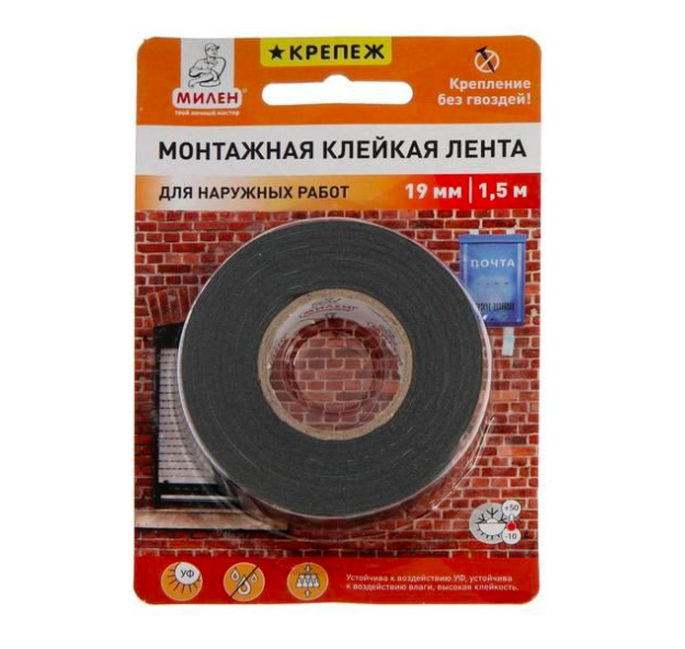 Монтаж. лента д/внутр. работ 19мм*1,5м "Милен"