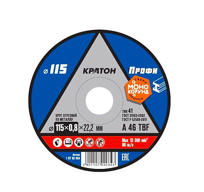 Диск отрезной Кратон 115х0.8х22,2 по металлу