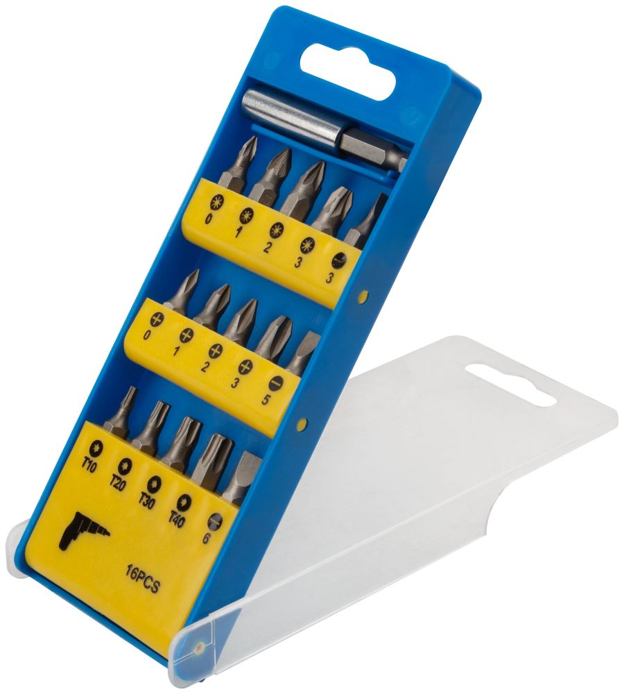 Набор бит FIT IT — надежное и эффективное решение для работ с крепежом. Биты выполнены из качественной хром-ванадиевой стали, что обеспечивает их прочность и долговечность. 15 бит (SL3, SL5, SL6, PH0, PH1, PH2, PH3, T10, T20, T30, T40, PZ0, PZ1, PZ2, PZ3) и магнитный адаптер в комплекте обеспечивают широкий спектр применения.