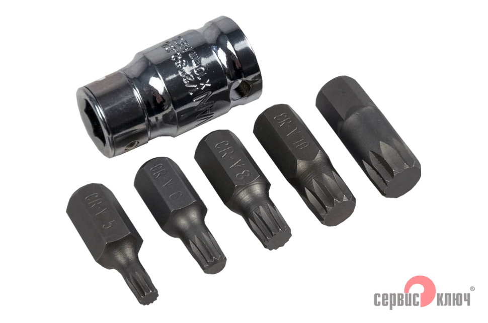 Набор бит (SPLINE) СЕРВИС КЛЮЧ (6 предметов) – это удобный набор, предназначенный для профессионалов и любителей. С помощью биты «сплин» вы можете откручивать/закручивать крепежные элементы различных изделий, устройств и агрегатов, например, шкив генератора многих марок автомобилей, например Ford, BMW и VW, еще в некоторых АКПП и вариаторах.