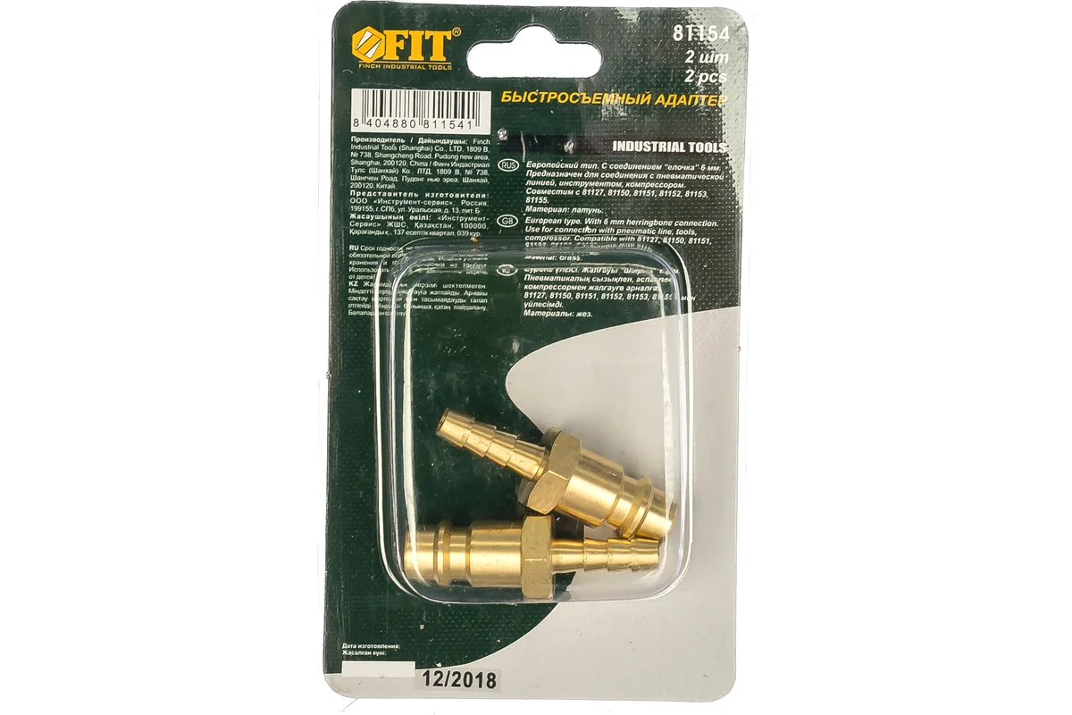 Адаптер быстросъемный FIT 81154 служит соединительным элементом выходного отверстия компрессора и шланга, к которому прикрепляется пневмоинструмент. В комплекте 2 штуки.