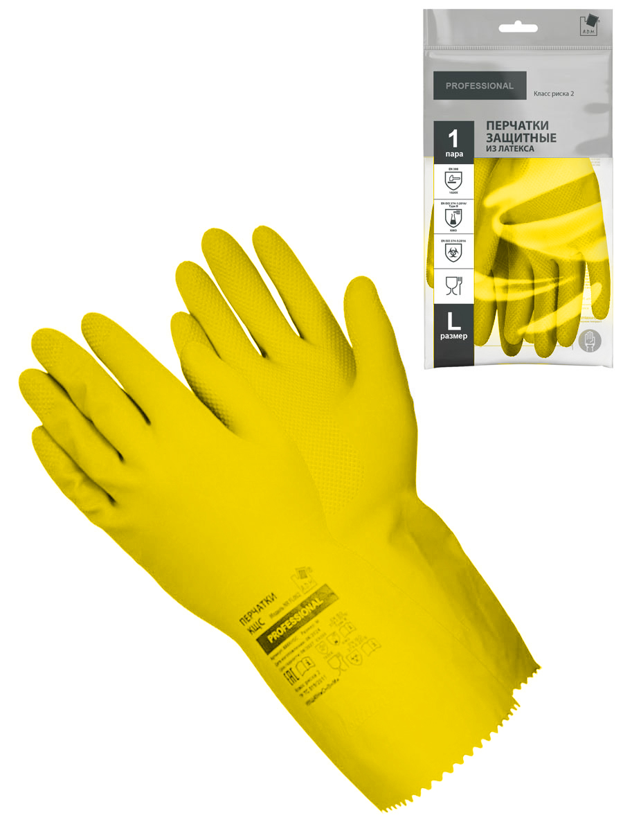 Перчатки защитные КЩС латексные желтые L (111КНSС)