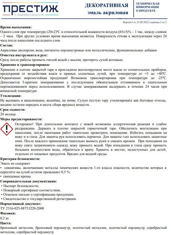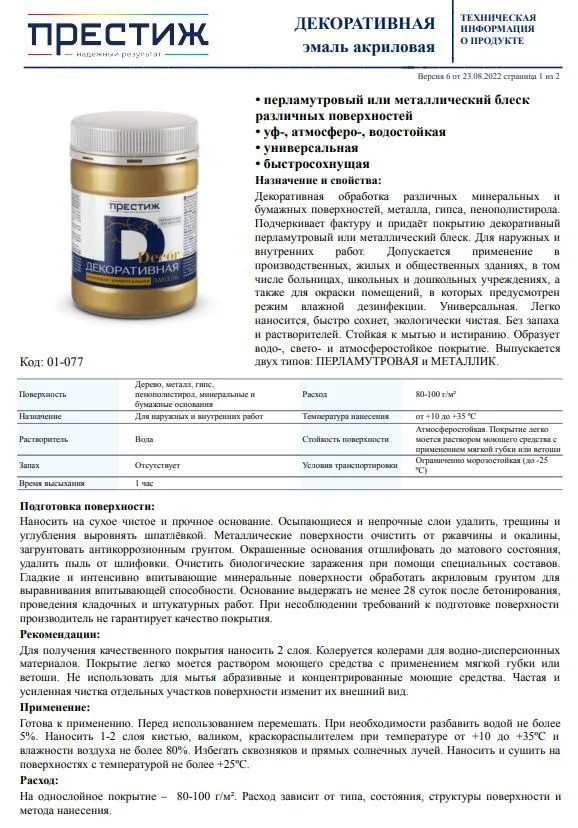 ДЕКОРАТИВНАЯ эмаль акриловая ПРЕСТИЖ 230г