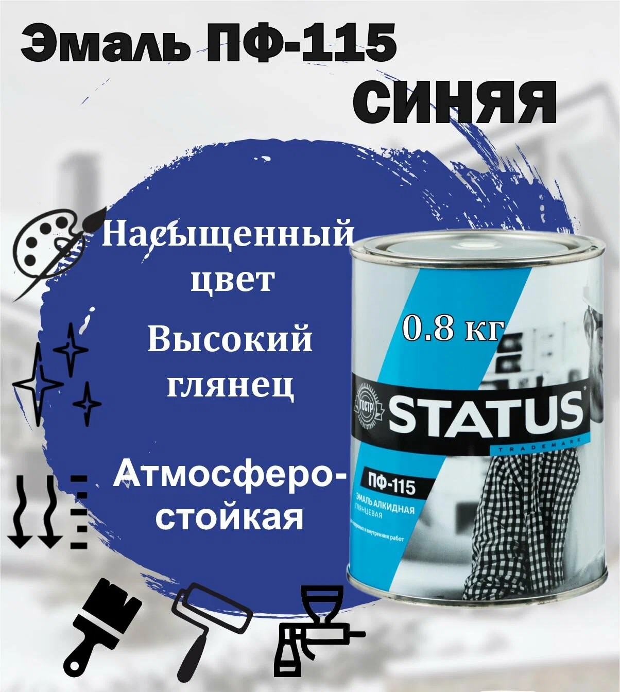 Эмаль ПФ-115 синяя 0,8кг "STATUS"