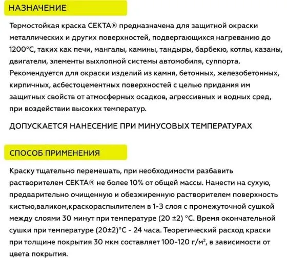 Расход: теоретический расход краски при толщине покрытия 30 мкм составляет 100-120г/м2 без учета потерь.