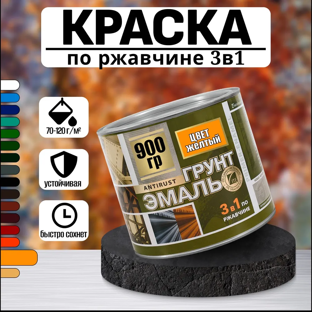 Грунт-эмаль 3в1 жёлтый 0,9кг "Радуга"
