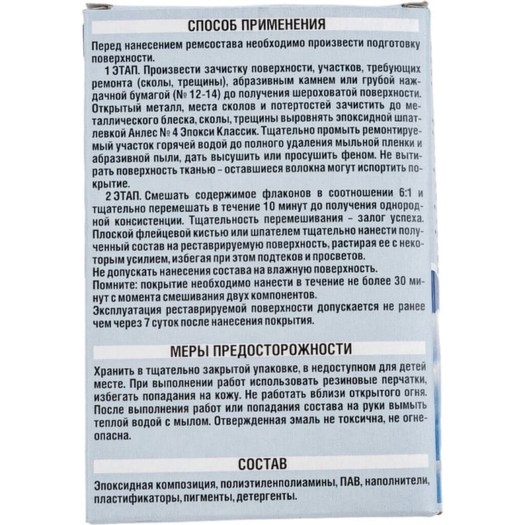 для реставрации и ремонта эмалевого покрытия, заделки сколов, трещин ванн, холодильников, газовых и электрических плит, металличесикх раковин