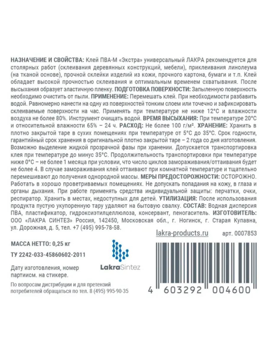 Клей ПВА-М 0,25 универ. Экстра Лакра