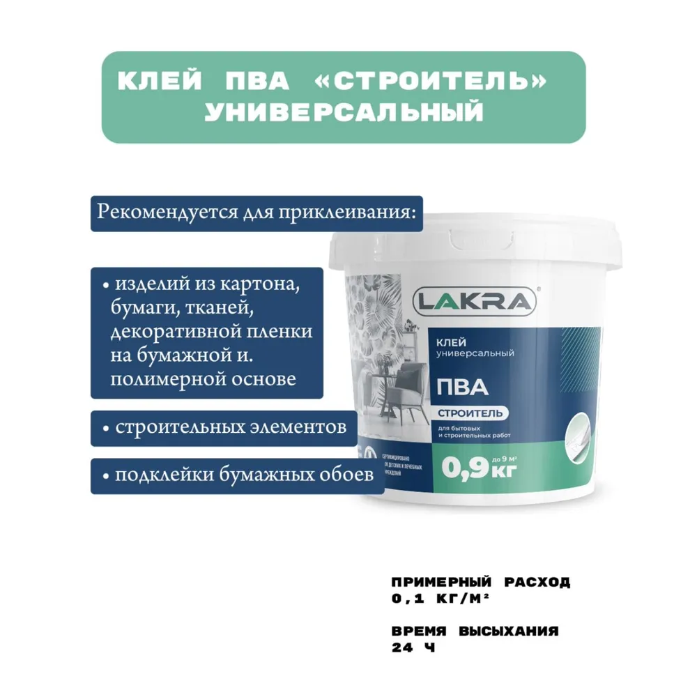 Клей ПВА унив.Строитель 0,9кг Лакра