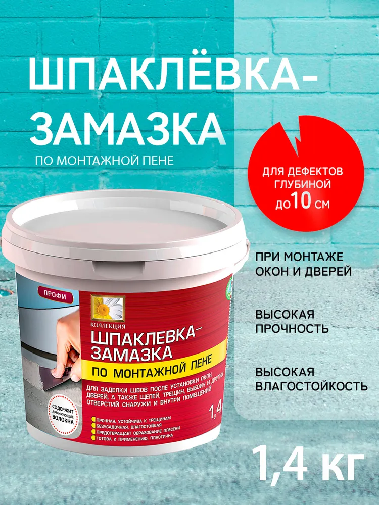 Шпатлевка замазка по монтажной пене идеально подходит для заделки швов по монтажной пене при установке окон, дверей и других ремонтных работах. Шпатлевка не растрескивается и не дает усадку. замазка для окон имеет в составе армирующие микроволокна, которые позволяют наносить слой до 10 см. Такие строительные смеси, как замазка оконная по пене можно может быть использована при ремонте глубоких выбоин, трещин, рустов, заделки отверстий в местах прохода труб, отлично защитит данные элементы от трещин.