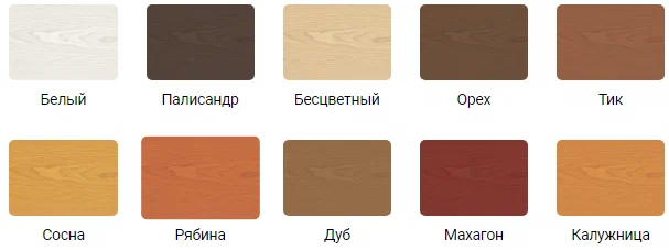 Окончательный результат зависит от типа древесины, качества подготовки поверхности, способа нанесения и количества слоев. Цвет состава в массе отличается от цвета окрашенной поверхности.