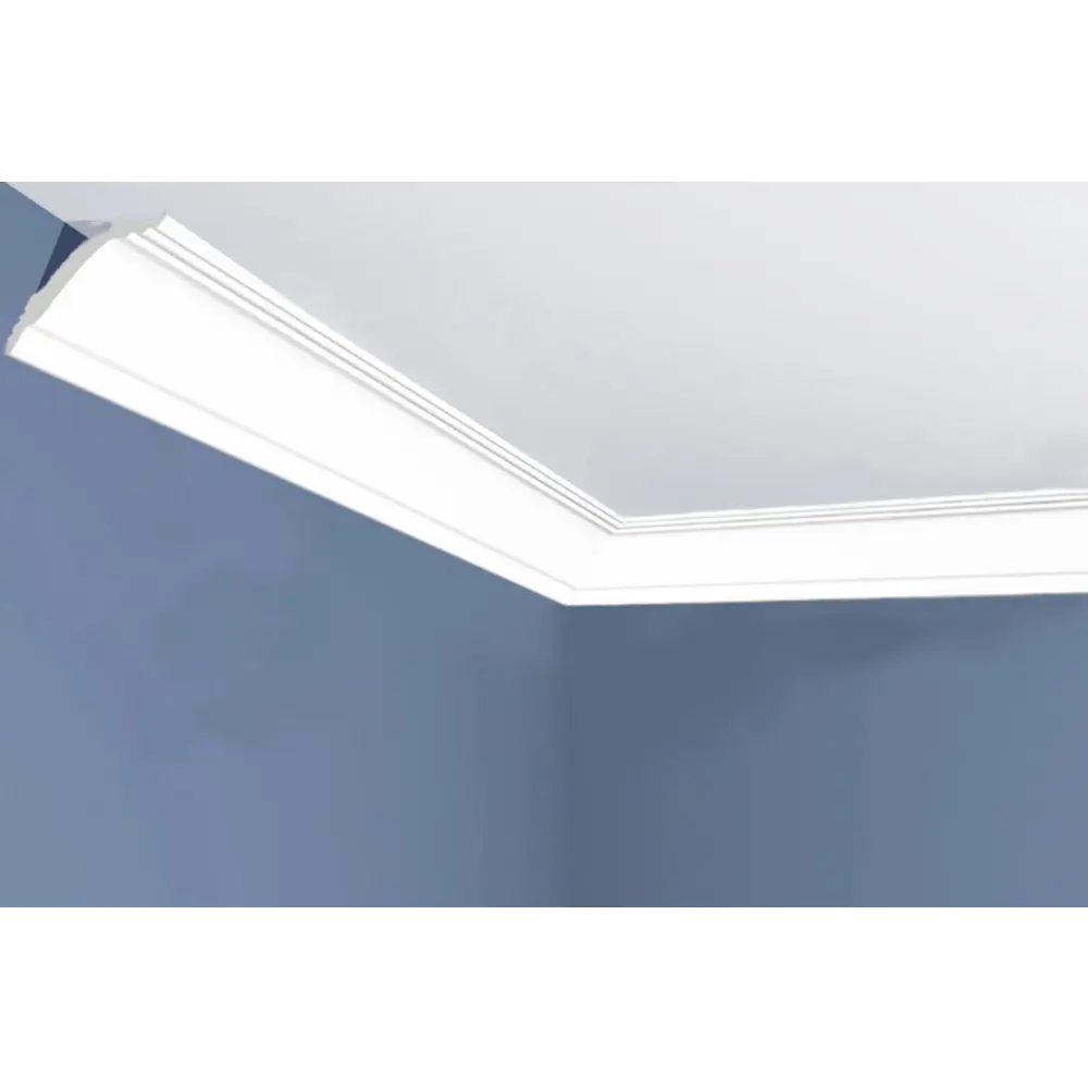 Потолочный плинтус является элементом практически любого интерьера и применяется в основном в целях украшения помещения, а также для скрытия мелких огрехов и неровностей на стыках стен с потолком. Потолочный плинтус из полистирола обладает следующими характеристиками: оригинальный дизайн, имитация натуральной лепнины из гипса, экологичность, влагостойкость, малый вес, возможность окрашивания, простота монтажа и подрезки (обычным ножом), оптимальное соотношение цены и качества. Потолочный плинтус R-48 благодаря увеличенной вертикальной клеевой поверхности удобно использовать также для отделки помещений с натяжным потолком, приклеивая его только к стене.